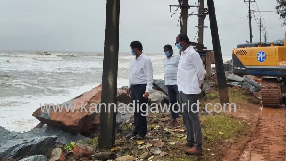 ಕುಂದಾಪುರ: ಕಳೆದ ಕೆಲವು ದಿನಗಳಿಂದ ಸುರಿದ ಬಾರೀ ಮಳೆ ಹಾಗೂ ಸಮುದ್ರದಲ್ಲಿ ತೂಫಾನ್ ಇರುವ ಹಿನ್ನೆಲೆ ಕುಂದಾಪುರ ತಾಲೂಕಿನ ಕೋಡಿ ಭಾಗದಲ್ಲಿ ಹಲವೆಡೆ ತೀವೃ ಕಡಲ್ಕೊರೆತ ಉಂಟಾಗಿದ್ದು ಶನಿವಾರ ಮಧ್ಯಾಹ್ನ ಶಾಸಕ ಹಾಲಾಡಿ ಶ್ರೀನಿವಾಸ ಶೆಟ್ಟಿ ಸ್ಥಳಕ್ಕೆ ಭೇಟಿ ನೀಡಿ ಪರಿಶೀಲಿಸಿದರು.