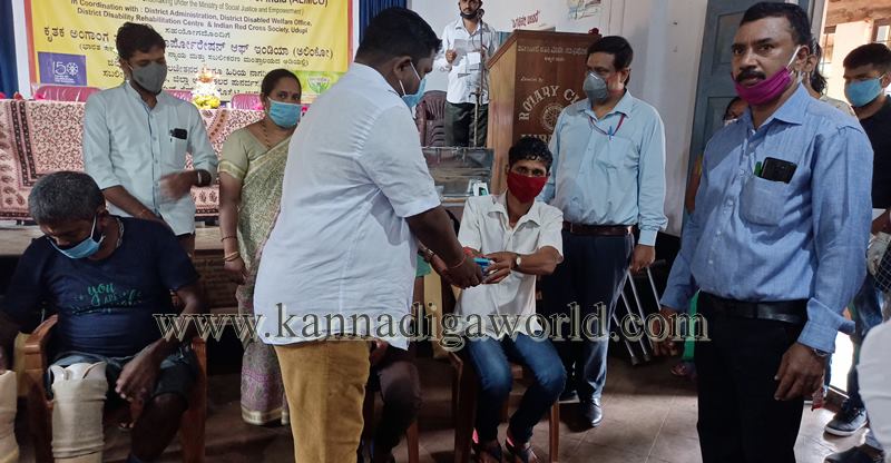 ಶ್ರವಣ ಸಾಧನ, ಕೃತಕ ಕಾಲು, ಕ್ಯಾಲಿಪರ್, ಮೊಣಕೈ ಊರುಗೋಲು, ಕಂಕುಳ ದೊಣ್ಣೆ, ರೋಲೆಟರ್, ಊರುಗೋಲು, ಗಾಲಿ ಕುರ್ಚಿ, ಸಿ.ಪಿ.ಗಾಲಿ ಕುರ್ಚಿ, ತ್ರಿಚಕ್ರ ಸೈಕಲ್, ಬ್ರೈಲ್ ಕಿಟ್, ಸ್ಮಾರ್ಟ್ ಕೇನ್ ,ಸೆಲ್ ಫೋನ್, ಸ್ಮಾರ್ಟ್ ಫೋನ್ ಗಳನ್ನು ಸಾಂಕೇತಿಕವಾಗಿ ಪಂಚಾಯತ್ ಅಧ್ಯಕ್ಷ ದಿನಕರ ಬಾಬು ಫಲಾನುಭವಿಗಳಿಗೆ ವಿತರಿಸಿದರು.