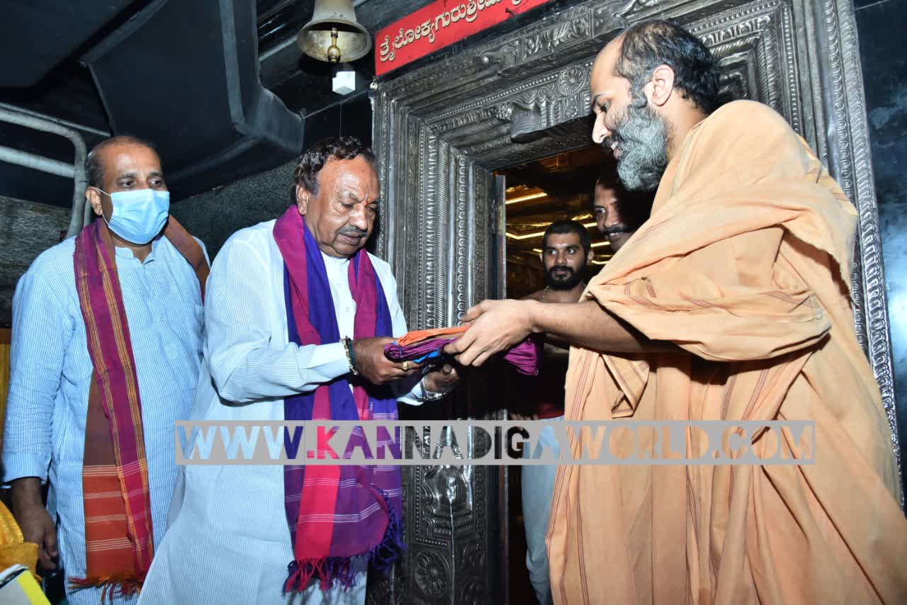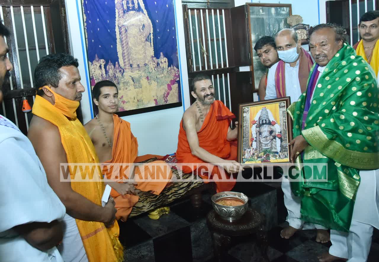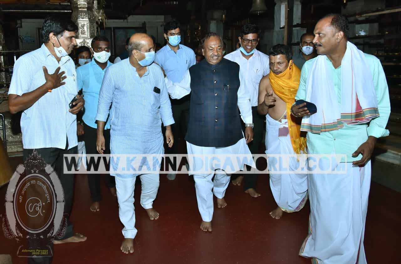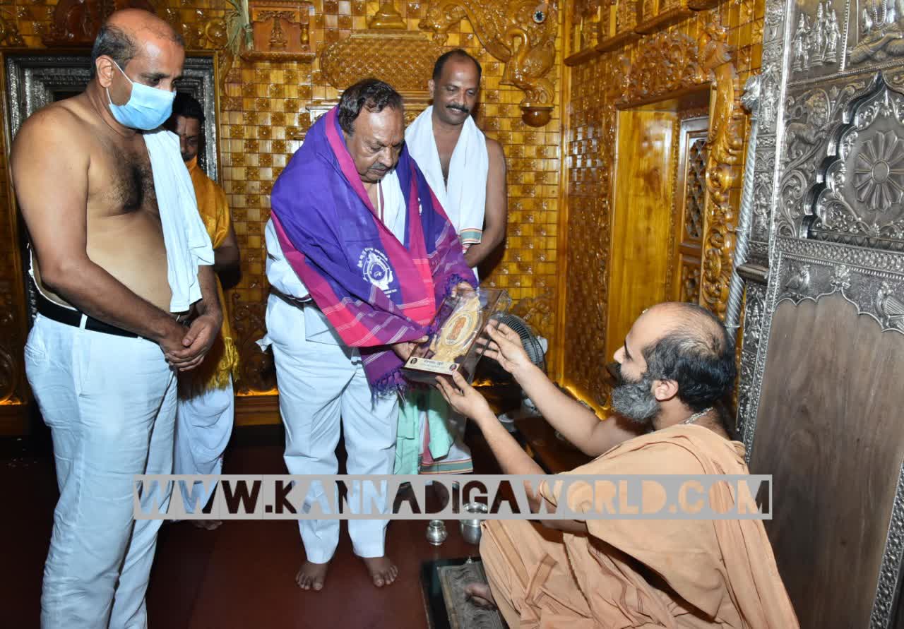 ಉಡುಪಿ: ಗ್ರಾಮೀಣಾಭಿವೃದ್ಧಿ, ಪಂಚಾಯತ್ ರಾಜ್ ಸಚಿವ ಕೆ.ಎಸ್ ಈಶ್ವರಪ್ಪ ಅವರು ಶ್ರೀ ಕೃಷ್ಣ ಮಠಕ್ಕೆ ತೆರಳಿ ಶ್ರೀ ಕೃಷ್ಣ ದೇವರ ದರ್ಶನ ಮಾಡಿದರು.