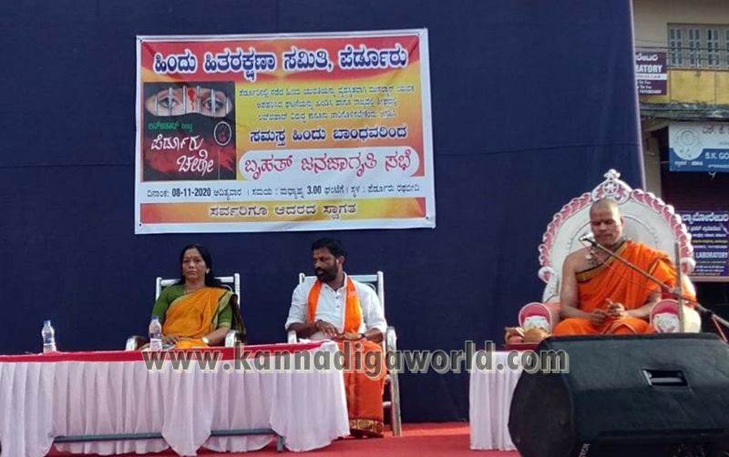 ಇತ್ತೀಚೆಗೆ ಪೆರ್ಡೂರಿನಲ್ಲಿ ನಡೆದ ಅಪ್ರಾಪ್ತ ಬಾಲಕಿಯನ್ನು ಅನ್ಯ ಕೋಮಿನ ಯುವಕ ಅಪಹರಿಸಿದ ಘಟನೆಯನ್ನು ಖಂಡಿಸಿ ಹಾಗೂ ರಾಜ್ಯದಲ್ಲಿ ಶೀಘ್ರವಾಗಿ ಲವ್ ಜಿಹಾದ್ ವಿರುದ್ಧ ಕಾನೂನು ಜಾರಿಗೊಳಿಸುವಂತೆ ಆಗ್ರಹಿಸಿ ಭಾನುವಾರ ಪೆರ್ಡೂರಿನ ರಥಬೀದಿಯಲ್ಲಿ ಹಿಂದೂ ಹಿತರಕ್ಷಣಾ ವೇದಿಕೆ ಇವರ ವತಿಯಿಂದ ನಡೆದ ‘ಪೆರ್ಡೂರು ಚಲೋ’ ಕಾರ್ಯಕ್ರಮದಲ್ಲಿ ಭಾಗವಹಿಸಿ ಮಾತನಾಡಿದರು.
