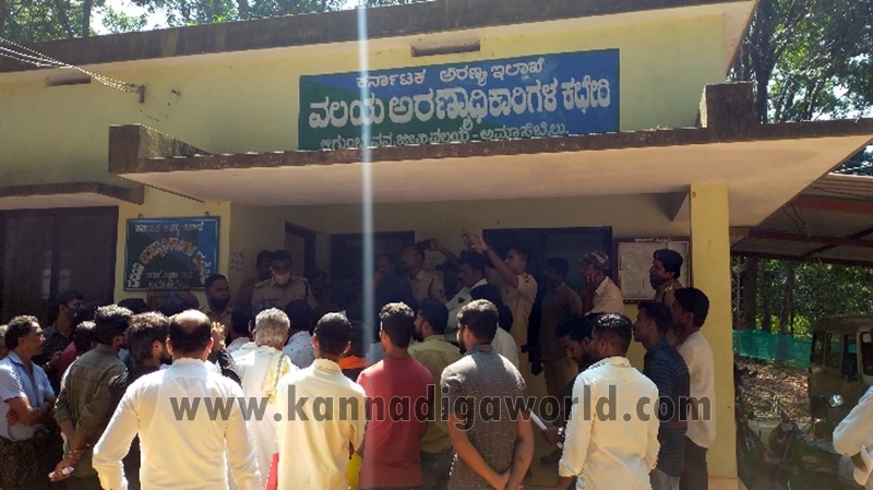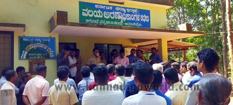 ಅಮಾಸೆಬೈಲಿನ ಗೋಳಿಕಾಡು ನಿವಾಸಿ ಮಾಲತಿ ನಾಯ್ಕ್ ಎನ್ನುವರ ಮಗ ನಟರಾಜ ನಾಯ್ಕ್ ಮತ್ತು ಸ್ಥಳೀಯ ಆನಂದ ಶೆಟ್ಟಿ ಅವರು ಎರ್ ಗನ್ ಹಿಡಿದುಕೊಂಡು ರಾತ್ರಿ ಬೈಕ್ ನಲ್ಲಿ ಬರುತ್ತಿದ್ದರೆನ್ನುವ ಆರೋಪದಲ್ಲಿ ವನ್ಯಜೀವಿ ವಲ ಸಂರಕ್ಷಾಣಾಧಿಕಾರಿಯವರು ತಂಡ ಇಬ್ಬರನ್ನು ವಶಕ್ಕೆ ಪಡೆದಿದ್ದರು. ಎರ್ ಗನ್ ಮತ್ತು ಬೈಕ್ ನ್ನು ವಶಕ್ಕೆ ಪಡೆದು, ಇಬ್ಬರನ್ನೂ ಬಂಧಿಸಿ ಜಾಮೀನು ರಹಿತ ಕೇಸ್ ದಾಖಲಿಸಿದ್ದರು. ಆದರೆ ತನ್ನ ಮಗ ಯಾವುದೇ ಮಾರಾಕಾಸ್ತ್ರ ಹೊಂದಿರಲಿಲ್ಲ. ಯಾವುದೇ ಕಾನೂನು ವಿರೋಧಿ ಕೃತ್ಯ ಮಾಡಿರಲಿಲ್ಲ. ಆದರೆ ಆತನ ಮೇಲೆ ದೈಹಿಕವಾಗಿ ಹಲ್ಲೆ ನಡೆಸಿ ಜಾತಿ ನಿಂದನೆ ಮಾಡಿ ದೌರ್ಜನ್ಯ ಎಸಗಲಾಗಿದೆ. ನಟರಾಜ ಮತ್ತು ಸ್ಥಳೀಯ ಆನಂದ ಶೆಟ್ಟಿ ಅವರನ್ನು ಬಿಡುಗಡೆಗೊಳಿಸಬೇಕು ಎಂದು ಮಾಲತಿ ಅವರು ಗ್ರಾಮಸ್ಥರೊಂದಿಗೆ ಇಂದು ಅಮಾಸೆಬೈಲು ಗ್ರಾಮಸ್ಥರು ಅರಣ್ಯಾಧಿಕಾರಿಗಳ ಕಚೇರಿಗೆ ಮುತ್ತಿಗೆ ಹಾಕಿ ಪ್ರತಿಭಟನೆ ನಡೆಸಿದರು.