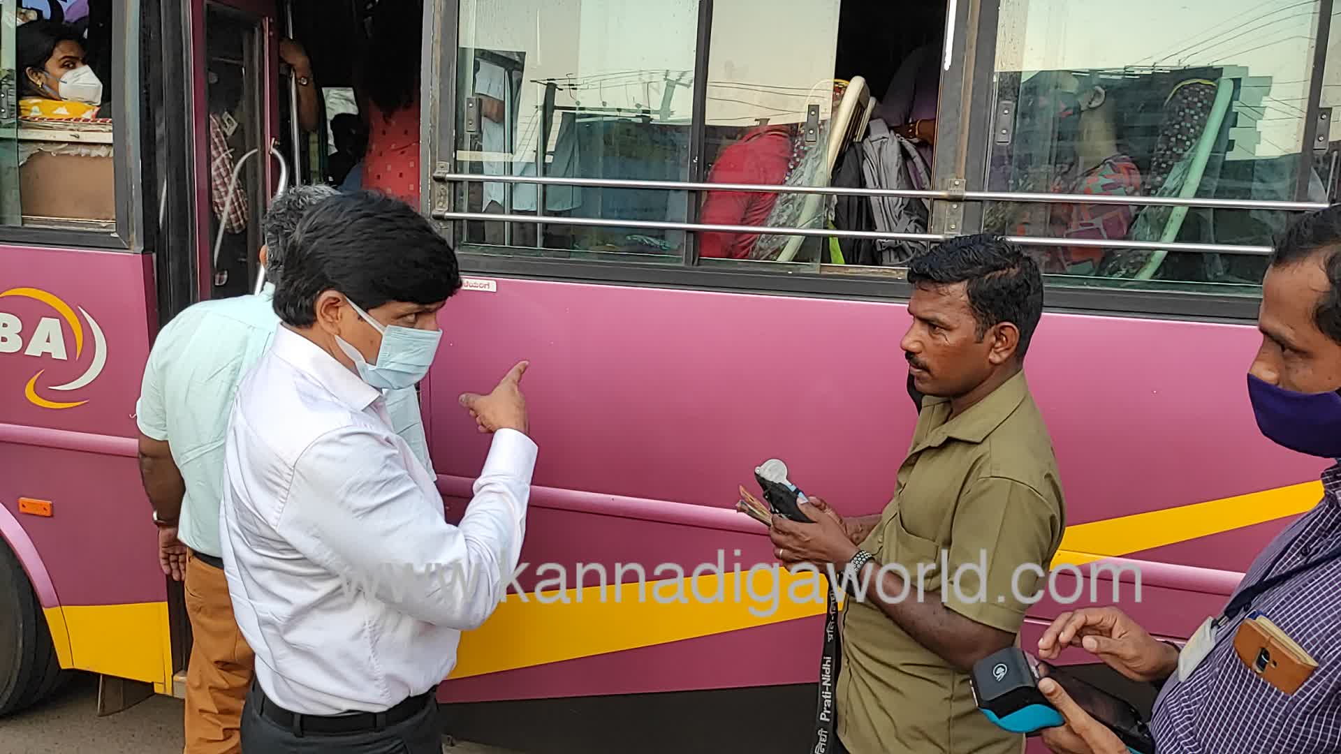 ಬಸ್ ಗಳಲ್ಲಿ ನಿಂತು ಪ್ರಯಾಣಿಸುತ್ತಿದ್ದ ಪ್ರಯಾಣಿಕರನ್ನು ಕೆಳಗಿಳಿಸಿದ ಜಿಲ್ಲಾದಿಕಾರಿಗಳು ಅವರೆಲ್ಲರಿಗೂ ಟಿಕೆಟ್ ನ ಮೊತ್ತವನ್ನು ಹಿಂದಿರುಗಿಸುವಂತೆ ಕಂಡಕ್ಟರ್ ಗೆ ಸೂಚಿಸಿ, ಸರ್ಕಾರದ ಆದೇಶವಿದ್ದರೂ ಹೆಚ್ಚಿನ ಜನರನ್ನು ಕರೆದೊಯ್ಯುತ್ತಿದ್ದ ಚಾಲಕ ಮತ್ತು ನಿರ್ವಾಹಕರನ್ನು ತೀವ್ರ ತರಾಟೆಗೆ ತೆಗೆದುಕೊಂಡರು. ಪ್ರಯಾಣಿಕರಿಗೂ ಸಹ ಬುದ್ದಿವಾದ ಹೇಳಿದ ಡಿಸಿ , ಬಸ್ ನಲ್ಲಿ ಸೀಟ್ ಇಲ್ಲವಾದಲ್ಲಿ ನಂತರದ ಬಸ್ ನಲ್ಲಿ ಸಂಚರಿಸುವಂತೆ ಹೇಳಿದರು.