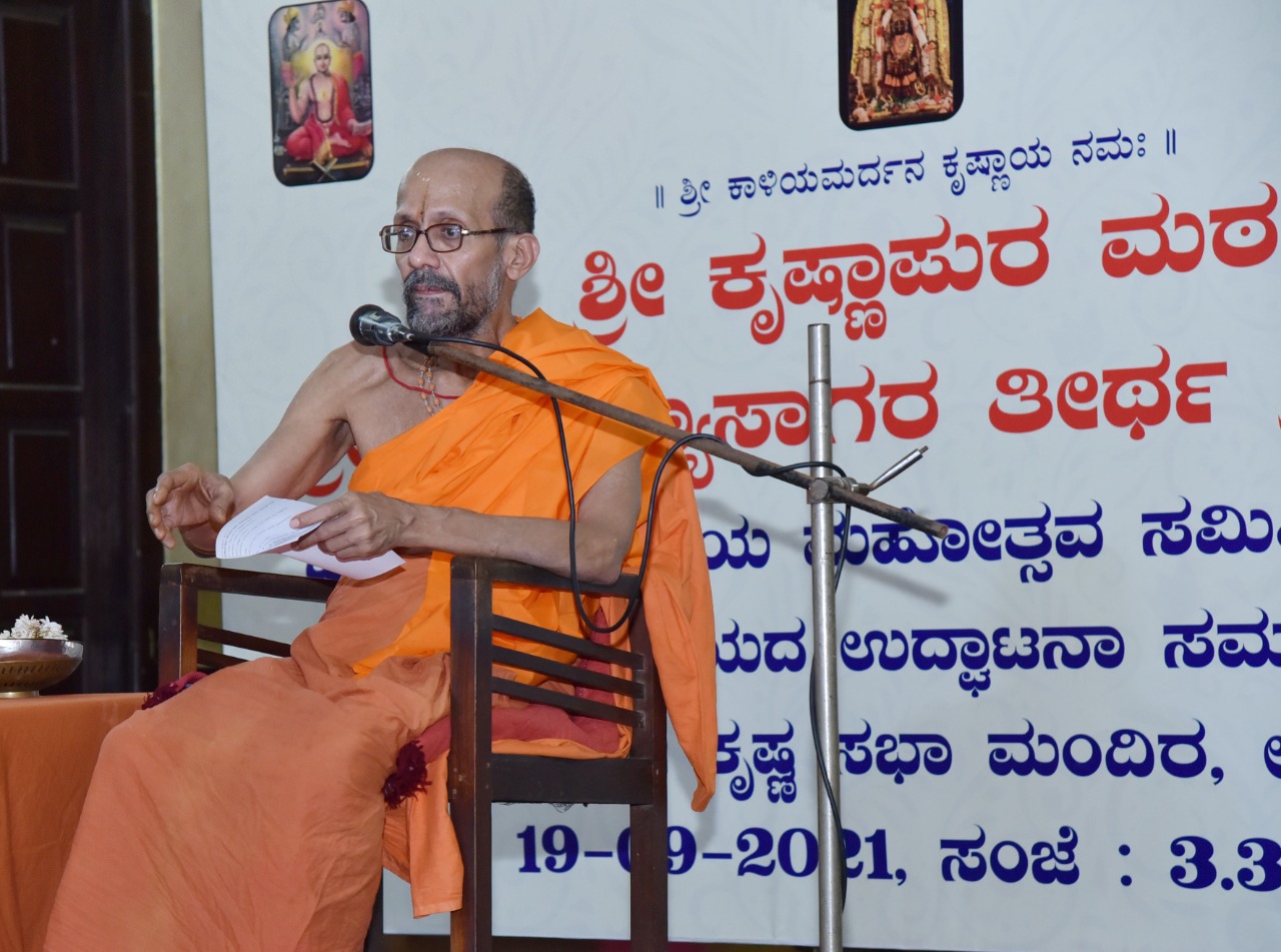 ಶ್ರೀ ಕೃಷ್ಣಾಪುರ ಮಠಾಧೀಶರಾದ ಶ್ರೀ ವಿದ್ಯಾಸಾಗರತೀರ್ಥ ಶ್ರೀಪಾದರು ಉದ್ಘಾಟಿಸಿ, ಪರ್ಯಾಯೋತ್ಸವವು ಪ್ರತೀ ಭಾರಿ ನಡೆಯುವಂತೆ ತಯಾರಿ ನಡೆಸಿ ಆ ಸಮಯದಲ್ಲಿ ಕೋವಿಡ್ ನಿಯಮಾನುಸಾರ ನಡೆಸಲಾಗುವುದು.ನಾವು ಮಾಡುವ ಉತ್ತಮ ಕಾರ್ಯವು ದೇವರ ಚಿತ್ತಕ್ಕೆ ಬಂದು ದೇಶಕ್ಕೆ ಕಲ್ಯಾಣವಾಗಲಿ.ನಮ್ಮ ಪರ್ಯಾಯವಾಗಿರದೆ ಗುರುಗಳಾದ ಮಧ್ವಾಚಾರ್ಯರ,ಭಾವೀ ಸಮೀರರಾದ ವಾದಿರಾಜರು ನಮ್ಮೊಳಗಿದ್ದು ಮಾಡುವ ಪರ್ಯಾಯದಿಂದ ಪ್ರಪಂಚಕ್ಕೆ ಮಂಗಳವಾಗಲಿ.ನಮ್ಮ ಮಠದ ಅಭಿಮಾನದ ಮೇರೆಗೆ ಆಗಮಿಸಿ ಜವಾಬ್ದಾರಿ ವಹಿಸಿಕೊಂಡು ಪರ್ಯಾಯಯೋತ್ಸವವು ಯಶಸ್ವಿಯಾಗುವಲ್ಲಿ ಸಹಕರಿಸುವ ತಮಗೆಲ್ಲರಿಗೂ ಶ್ರೀಕೃಷ್ಣ ಮುಖ್ಯಪ್ರಾಣ ದೇವರು ಶ್ರೇಯಸ್ಸನ್ನುಂಟು ಮಾಡಲಿ‌ ಎಂದರು.