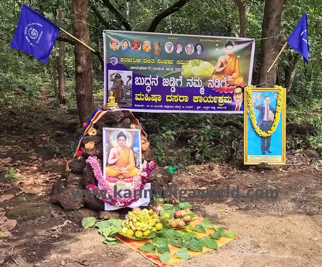 ಕುಂದಾಪುರ: ದಲಿತ ಸಂಘರ್ಷ ಸಮಿತಿ ಭೀಮ ಘರ್ಜನೆ ಉಡುಪಿ ಜಿಲ್ಲಾ ಸಮಿತಿ ವತಿಯಿಂದ ‘ಬುದ್ದನ ಜಡ್ಡಿಗೆ ನಮ್ಮ ನಡಿಗೆ, ಮಹಿಷಾ ದಸರಾ’ ಕಾರ್ಯಕ್ರಮ ತಾಲೂಕಿನ ನೇರಳಕಟ್ಟೆ ಸಮೀಪದ ರ್ಕುಂಜೆ ಗ್ರಾಮ ಪಂಚಾಯತ್ ವ್ಯಾಪ್ತಿಯ ಬುದ್ದನ ಜಡ್ಡಿನಲ್ಲಿ ನೆರವೇರಿತು.