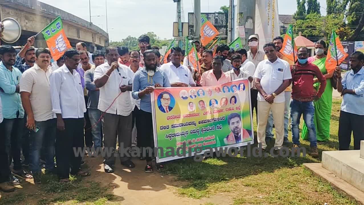 ಅವರು ಬುಧವಾರ ಇಲ್ಲಿನ ಶಾಸ್ತ್ರಿ ವೃತ್ತದಲ್ಲಿ ಬಿಜೆಪಿ ಎಸ್ಸಿ ಮೋರ್ಚಾ ವತಿಯಿಂದ ನಡೆದ, ದಲಿತ ವಿರೋಧಿ ಹೇಳಿಕೆ ನೀಡಿದ ಸಿದ್ದರಾಮಯ್ಯ ವಿರುದ್ಧದ ಪ್ರತಿಭಟನೆಯಲ್ಲಿ ಮಾತನಾಡಿದರು.