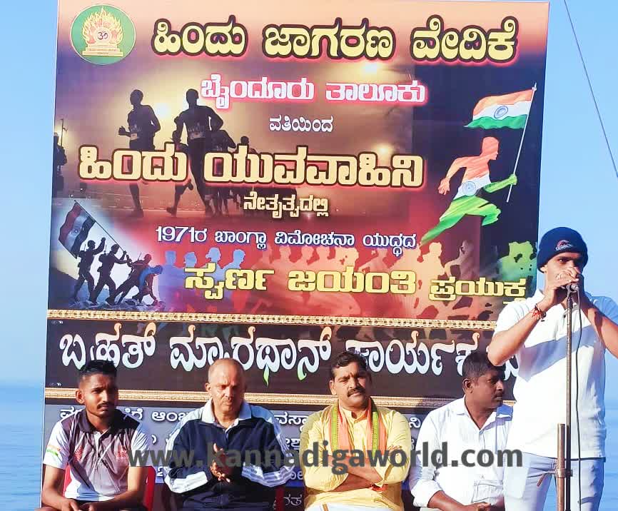 ಕುಂದಾಪುರ: ಹಿಂದೂ ಜಾಗರಣ ವೇದಿಕೆ ಬೈಂದೂರು ತಾಲೂಕು ವತಿಯಿಂದ ಹಿಂದೂ ಯುವವಾಹಿನಿ ನೇತೃತ್ವದಲ್ಲಿ ಬಾಂಗ್ಲಾ ವಿಮೋಚನೆ ಯುದ್ದದ ಗೆಲುವಿನ ಸ್ವರ್ಣ ಜಯಂತಿ ಪ್ರಯುಕ್ತ ಮ್ಯಾರಥಾನ್ ನಡೆಯಿತು.