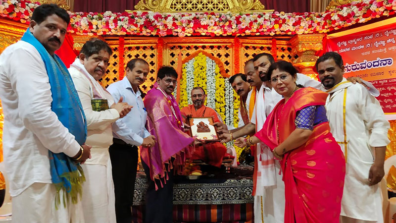 ಮಹಾಸ್ವಾಮೀಜಿಯವರು ರವಿವಾರ ಮಂಗಳೂರು ಮಹಾನಗರಕ್ಕೆ ಭೇಟಿ ನೀಡಿದ ಸಂದರ್ಭ ಮಂಗಳೂರು ದೈವಜ್ಞ ಬ್ರಾಹ್ಮಣ ಸಂಘ (ರಿ.),  ದೈವಜ್ಞ ಮಹಿಳಾ ಮಂಡಳಿ ರಿ.  ದೈವಜ್ಞ ಚಿನ್ನ ಬೆಳ್ಳಿ ಕೆಲಸಗಾರರ ಸಂಘ ರಿ.  ದೈವಜ್ಞ ಯುವಕ ಮಂಡಳಿ ರಿ.  ಇವರ ಆಶ್ರಯದಲ್ಲಿ  ರವಿವಾರ  ಬೆಳಿಗ್ಗೆ 10 :00 ಗಂಟೆಗೆ ಮಂಗಳೂರಿನ ಅಶೋಕ ನಗರದ ದೈವಜ್ಞ ಕಲ್ಯಾಣ ಮಂಟಪದಲ್ಲಿ  ಸ್ವಾಮೀಜಿಯವರಿಗೆ ಗುರುವಂದನಾ  ಮತ್ತು  ಪಾದುಕಾ ಪೂಜೆ ಕಾರ್ಯಕ್ರಮ ನೆರವೇರಿತು. ಈ ವೇಳೆ  ಸ್ವಾಮೀಜಿಯವರು ಆಶೀರ್ವಚನ ನೀಡಿದರು.