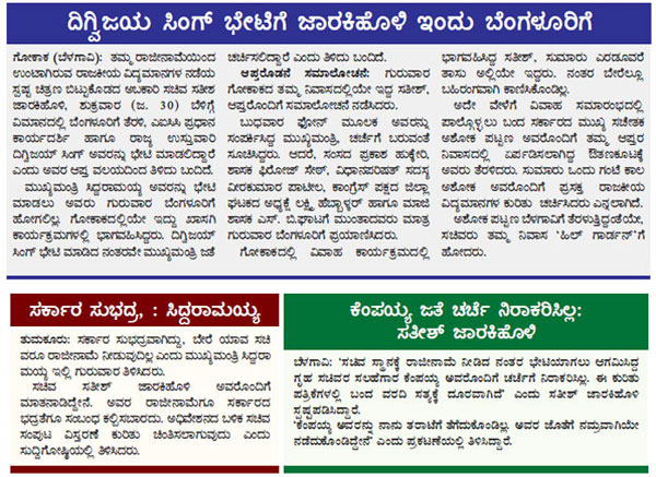 ಇದಕ್ಕೆ ಅವರು ಸ್ಪಂದಿಸದ ಕಾರಣ ರಾಜೀನಾಮೆ ಸಲ್ಲಿಸುವಂತೆ ಸತೀಶ್ ಅವರಿಗೆ ಸೂಚಿಸಲಾಯಿತು’ ಎಂದರು. ‘ಪರಿಶಿಷ್ಟ ಪಂಗಡಕ್ಕೆ ಶೇ ೭.೫ರಷ್ಟು ಮೀಸಲಾತಿ ಕಲ್ಪಿಸುವಂತೆ ಎಂಟು ತಿಂಗಳಿನಿಂದಲೂ ಒತ್ತಾಯಿಸುತ್ತಿದ್ದೇವೆ. ಆದರೆ, ಯಾವ ಸರ್ಕಾರವೂ ನಮ್ಮ ಮನವಿ ಪರಿಗಣಿಸಿಲ್ಲ. ಸಿದ್ಧರಾಮಯ್ಯ ಮಂತ್ರಿ ಮಂಡಲದಲ್ಲಿ ಸಣ್ಣ ಪುಟ್ಟ ಜಾತಿಗಳಿಗೆ 2–3 ಮಂತ್ರಿ ಸ್ಥಾನ ನೀಡಲಾಗಿದೆ. ರಾಜ್ಯದಲ್ಲಿ ೪೫ ಲಕ್ಷ ಜನಸಂಖ್ಯೆ ಹೊಂದಿರುವ ವಾಲ್ಮೀಕಿ ಜನಾಂಗಕ್ಕೆ ಕೇವಲ ಒಂದು ಮಂತ್ರಿ ಸ್ಥಾನ ಮಾತ್ರ ನೀಡಲಾಗಿದೆ. ಪರಿಶಿಷ್ಟ ಪಂಗಡಕ್ಕೆ ಮೀಸಲಾತಿಯನ್ನು ಶೇ ೭.೫ಕ್ಕೆ ಹೆಚ್ಚಿಸಬೇಕು. ಮೇಲಾಗಿ ರಾಜಕೀಯ ಮೀಸಲಾತಿ ಅನ್ವಯ ಇನ್ನೂ ಮೂವರಿಗೆ ಸಚಿವ ಸ್ಥಾನ ನೀಡಿದರೆ ಸತೀಶ್ ಜಾರಕಿಹೊಳಿ ಅವರಿಗೆ ರಾಜೀನಾಮೆ ಹಿಂಪಡೆಯುವಂತೆ ಸೂಚಿಸಲಾಗುವುದು ಎಂದರು. ಇಲ್ಲವಾದಲ್ಲಿ ಪರಿಶಿಷ್ಟ ಪಂಗಡಕ್ಕೆ ಸೇರಿದ ೧೫ ವಿಧಾನಸಭಾ ಸದಸ್ಯರ ರಾಜೀನಾಮೆ ಕೊಡಿಸಲಾಗುವುದು’ ಎಂದು ಅವರು ಎಚ್ಚರಿಸಿದರು.