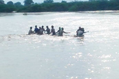 ವಿಷಯ ತಿಳಿದ ಮನೆಯವರು ಈಜಿ ದಡದಲ್ಲಿರುವ ಹೊಲಕ್ಕೆ ತೆರಳಿ ಹಗ್ಗ ಬಿಟ್ಟು ಹೊಲದಲ್ಲಿದ್ದ ಐವರನ್ನು ಪಾರು ಮಾಡಿದ್ದಾರೆ.