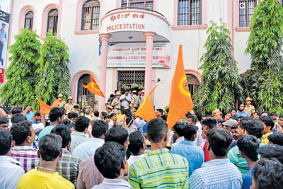 ಕಮರ್ಷಿಯಲ್ ಸ್ಟ್ರೀಟ್ ಠಾಣೆ ಮುಂದೆ ಪ್ರತಿಭಟನೆ