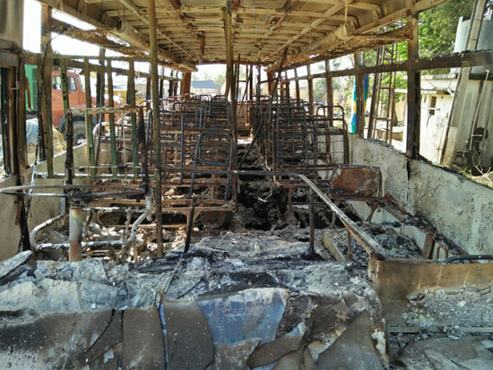 25 ವರ್ಷದ ನಿಂಗರಾಜ್ ಬೆಳಗುಟ್ಟಿ ಮೃತ ಸೆಕ್ಯೂರಿಟಿ ಗಾರ್ಡ್. ಜಿಲ್ಲೆಯ ರಾಣೇಬೆನ್ನೂರು ಹೊರವಲಯದ ಮಾಗೋಡು ಗ್ರಾಮದ ಹತ್ತಿರವಿರುವ ಬಸ್ ಡಿಪೋದಲ್ಲಿ ಈ ಘಟನೆ ನಡೆದಿದೆ. ಇಂದು ಬೆಳಗಿನ ಜಾವ ಮೂರು ಗಂಟೆಯ ನಂತರ ಬಸ್ಗೆ ಬೆಂಕಿ ಹತ್ತಿರಬಹುದು ಎಂದು ಹೇಳಲಾಗುತ್ತಿದೆ. ಬೆಂಕಿ ಹೊತ್ತಿಕೊಂಡ ಪರಿಣಾಮ ಬಸ್ನ ಬಹುತೇಕ ಭಾಗ ಸುಟ್ಟು ಕರಕಲಾಗಿದೆ.