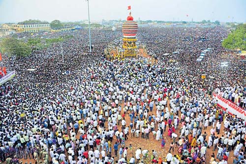 ದೇವರ ಉತ್ಸವ ಮೂರ್ತಿ ಪಲ್ಲಕ್ಕಿ ಮೂಲಕ ರಥದ ಸಮೀಪ ಬರುತ್ತಿದ್ದಂತೆಯೇ ಮಾಜಿ ಪ್ರಧಾನಿ, ಜೆಡಿಎಸ್ ವರಿಷ್ಠ ಎಚ್.ಡಿ.ದೇವೇಗೌಡ ಅವರು ಪಲ್ಲಕ್ಕಿಗೆ ಹೆಗಲುಕೊಟ್ಟು ಹೆಜ್ಜೆ ಹಾಕಿದರು.