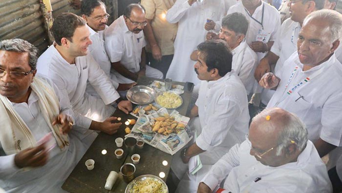 ರಾಯಚೂರು: ಮೇ ತಿಂಗಳಲ್ಲಿ ನಡೆಯುವ ರಾಜ್ಯ ವಿಧಾನಸಭೆ ಚುವಾವಣೆಗೆ ಕಳೆದ ಶನಿವಾರ ಬಿಸಿಲ ನಾಡಲ್ಲಿ ರಣ ಕಹಳೆ ಊದಿರುವ ಕಾಂಗ್ರೆಸ್ ಅಧ್ಯಕ್ಷ ರಾಹುಲ್ ಗಾಂಧಿ ಅವರು ಸೋಮವಾರ ರಾಯಚೂರಿನ ಒಂದು ಸಣ್ಣ ಹೋಟೆಲ್ ನಲ್ಲಿ ಉತ್ತರ ಕರ್ನಾಟಕದ ವಿಶೇಷ ತಿಂಡಿ ಒಗ್ಗರಣಿ ಹಾಗೂ ಬಜಿ ಸವಿದರು.