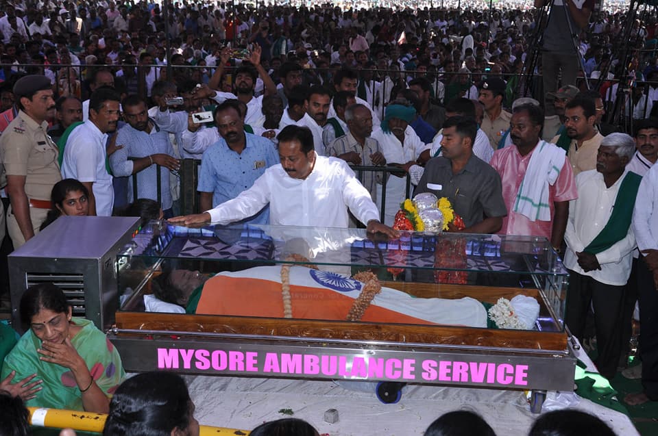 ರಾಜ್ಯದ ಮೂಲೆ ಮೂಲೆಗಳಿಂದ ಲಕ್ಷಾಂತರ ರೈತರು, ಅಭಿಮಾನಿಗಳು ಕುಟುಂಬ ಸದಸ್ಯರ ಸಮ್ಮುಖದಲ್ಲಿ ನಡೆದ ಅಂತ್ಯಸಂಸ್ಕಾರಕ್ಕೆ ಸಾಕ್ಷಿಯಾದರು.