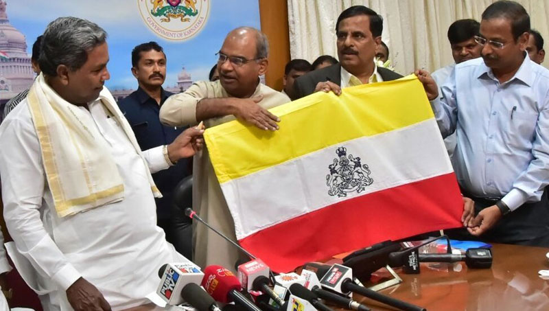 ಸಾಹಿತಿ ಹಂಪನಾಗರಾಜಯ್ಯ ಅವರು ತ್ರಿವರ್ಣ ಬಣ್ಣದ ನಾಡಧ್ವಜವನ್ನು ವಿನ್ಯಾಸ ಮಾಡಿದ್ದು, ಇಂದು ರಾಜ್ಯ ಸಂಪುಟ ಸಭೆಗೆ ಹಸ್ತಾಂತರಿಸಿದರು. ಈ ವೇಳೆ ಸಿಎಂ ಸಿದ್ದರಾಮಯ್ಯ ನೇತೃತ್ವದ ರಾಜ್ಯ ಸರ್ಕಾರ ನಾಡಧ್ವಜಕ್ಕೆ ಅನುಮೋದನೆ ನೀಡಿದೆ. ಇದೀಗ ಸರ್ಕಾರ ಅನುಮೋದನೆ ನೀಡಿರುವ ನಾಡಧ್ವಜಕ್ಕೆ ಕೇಂದ್ರ ಸರ್ಕಾರದ ಅನುಮೋದನೆ ಬೇಕಿದ್ದು, ಕೇಂದ್ರ ಸರ್ಕಾರದ ಅನುಮೋದನೆ ದೊರೆತಿದ್ದೇ ಆದರೆ ಪ್ರತ್ಯೇಕ ನಾಡಧ್ವಜ ಹೊಂದಿದ ಮೊದಲ ರಾಜ್ಯ ಎಂಬ ಕೀರ್ತಿಗೆ ಕರ್ನಾಟಕ ಭಾಜನವಾಗುತ್ತದೆ.