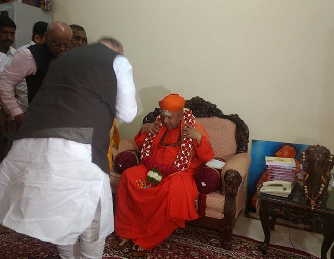 ಚಿತ್ರದುರ್ಗ: ಬಿಜೆಪಿ ರಾಷ್ಟ್ರೀಯ ಅಧ್ಯಕ್ಷ ಅಮಿತ್ ಶಾ ಮಂಗಳವಾರ ತಾಲ್ಲೂಕಿನ ಸಿರಿಗೆರೆಯ ತರಳಬಾಳು ಮಠಕ್ಕೆ ಭೇಟಿ ನೀಡಿ ಪೀಠಾಧ್ಯಕ್ಷ ಶಿವಮೂರ್ತಿ ಶಿವಾಚಾರ್ಯ ಸ್ವಾಮೀಜಿ ಅವರಿಂದ ಆಶೀರ್ವಾದ ಪಡೆದರು.