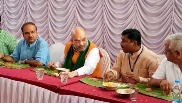 ಮಂಡ್ಯದಲ್ಲಿ ಸಾವಯವ ರೈತ ಮಹಿಳಾಕೂಟದ ಸದಸ್ಯರೊಂದಿಗೆ ಊಟ ಮಾಡಿದ ಅಮಿತ್ ಶಾ