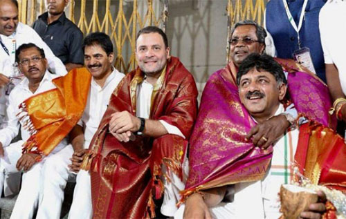ಕೋಲಾರದಲ್ಲಿ ಪ್ರಚಾರ ನಿಮಿತ್ತ ಆಗಮಿಸಿದ ರಾಹುಲ್ ದೇವಾಲಯಕ್ಕೆ ಭೇಟಿ ನೀಡಿ ವಿಶೇಷ ಪೂಜೆ ಸಲ್ಲಿಸಿದರು. ಅವರೊಂದಿಗೆ ಸಿಎಂ ಸಿದ್ದರಾಮಯ್ಯ , ಸಚಿವ ಡಿಕೆಶಿ, ಕಾಂಗ್ರೆಸ್ ಉಸ್ತುವಾರಿ ವೇಣುಗೋಪಾಲ್, ಕೆಪಿಸಿಸಿ ಅಧ್ಯಕ್ಷ ಡಾ.ಜಿ.ಪರಮೇಶ್ವರ್ ಅವರು ಉಪಸ್ಥಿತರಿದ್ದರು.