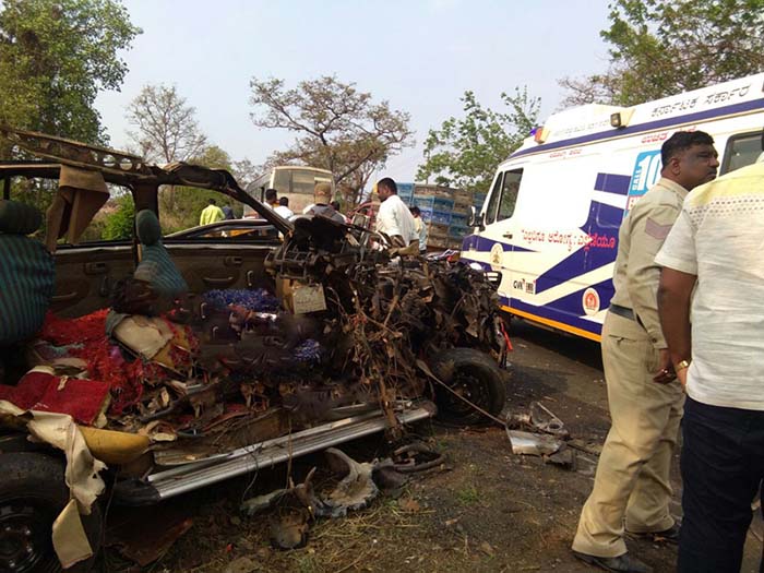 ಧಾರವಾಡದ ಹಳಿಯಾಳ ಬಳಿ ಸರ್ಕಾರಿ ಬಸ್ಸು–ಟವೇರಾ ಕಾರ್ ಡಿಕ್ಕಿ; ನಾಲ್ವರು ಬಲಿ