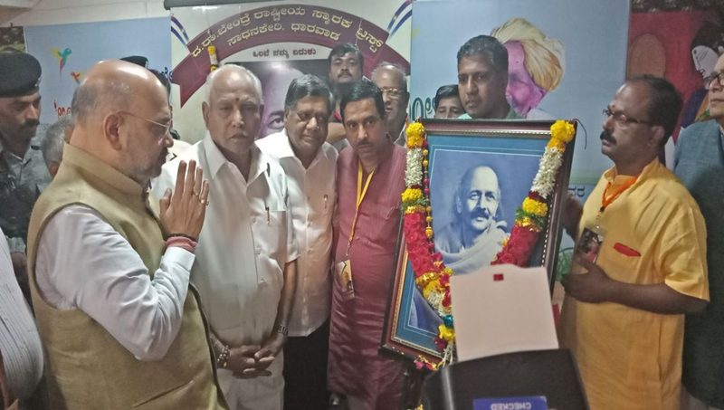 ಧಾರವಾಡದಲ್ಲಿ ವರಕವಿ ಡಾ. ದ.ರಾ.ಬೇಂದ್ರೆ ಭವನಕ್ಕೆ ಭೇಟಿ ನೀಡಿದ ಅಮಿತ್ ಶಾ ಅವರು ಬೇಂದ್ರೆ ಭಾವಚಿತ್ರಕ್ಕೆ ಪುಷ್ಪ ನಮನ ಸಲ್ಲಿಸಿದರು.