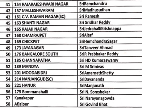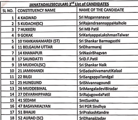 ಕೈ, ಕಮಲ ಬಂಡಾಯ ಅಭ್ಯರ್ಥಿಗಳಿಗೆ ಟಿಕೆಟ್: 58 ಜೆಡಿಎಸ್ ಅಭ್ಯರ್ಥಿಗಳ 2ನೇ ಪಟ್ಟಿ ಬಿಡುಗಡೆ