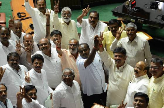 ಬೆಂಗಳೂರು: ಕಾಂಗ್ರೆಸ್-ಜೆಡಿಎಸ್ ಮೈತ್ರಿ ಮುರಿಯಲು ಬಿಜೆಪಿ ಸಾಕಷ್ಟು ಕಸರತ್ತು ನಡೆಸಿದರೂ ಹೈಕಮಾಂಡ್ನ ಸ್ಪಷ್ಟ ನಿಲುವು ಮತ್ತು ಎರಡೂ ಪಕ್ಷಗಳ ನಾಯಕ ಒಗ್ಗಟ್ಟೇ ಬಿಜೆಪಿ ಸೋಲೊಪ್ಪಿಕೊಳ್ಳಲು ಕಾರಣವಾಯಿತು.