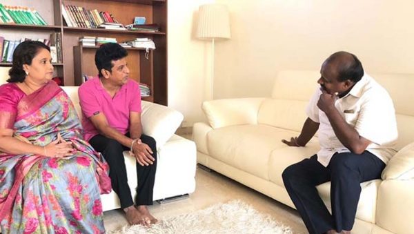 ನಟ ಶಿವರಾಜ್‍ಕುಮಾರ್ ದಂಪತಿಯಿಂದ ಮುಖ್ಯಮಂತ್ರಿ ಕುಮಾರಸ್ವಾಮಿಯ ಭೇಟಿ !