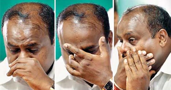 ಮೈತ್ರಿ ಸರ್ಕಾರದಲ್ಲಿ ನಾನು ವಿಷಕಂಠನಾಗಿದ್ದೇನೆ. ನಾನು ಸಂತಸದಿಂದ ಇಲ್ಲ. ಮುಳ್ಳಿನ ಆಸನದಲ್ಲಿ ಕುಳಿತ್ತಿದ್ದೇನೆ. ಹಿಂದಿನ ಸರ್ಕಾರದ ಸಾಲಮನ್ನಾದ ಹೊರೆಯೂ ನನ್ನ ಮೇಲಿದೆ. ಈಗ ಸಾಲಮನ್ನಾ ಮಾಡಿದರೂ ಎಲ್ಲರನ್ನು ತೃಪ್ತಿ ಪಡಿಸಲು ಸಾಧ್ಯವಾಗಿಲ್ಲ ಎಂದು ಸಮಾರಂಭವೊಂದರಲ್ಲಿ ಹೇಳುತ್ತಲೇ ಕುಮಾರಸ್ವಾಮಿ ಅವರು ಕಣ್ಣೀರು ಹಾಕಿದ್ದರು.