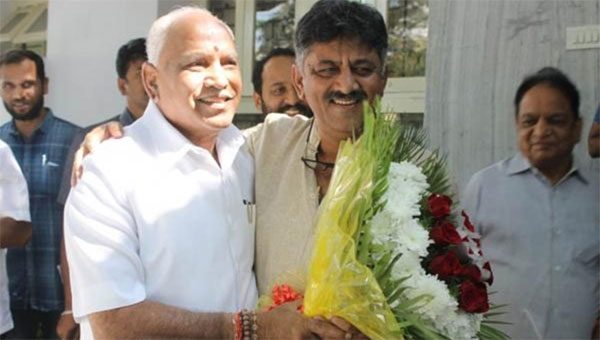 ಬೆಂಗಳೂರು: ಬಿಜೆಪಿ ರಾಜ್ಯಾಧ್ಯಕ್ಷ ಬಿಎಸ್ ಯಡಿಯೂರಪ್ಪ ಅವರು ಬುಧವಾರ ಜಲಸಂಪನ್ಮೂಲ ಸಚಿವ ಡಿ.ಕೆ ಶಿವಕುಮಾರ್ ಅವರ ಮನೆಗೆ ತೆರಳಿ ಮಾತುಕತೆ ನಡೆಸಿದ್ದು, ರಾಜಕೀಯ ವಲಯದಲ್ಲಿ ತೀವ್ರ ಕುತೂಹಲ ಮೂಡಿಸಿದೆ.