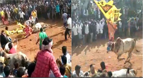 ಹೋರಿ ಕೆಳಗೆ ಬಿದ್ದು ನರಳಾಡಿ ಸಾವನ್ನಪ್ಪುತ್ತಿರುವ ಮನಕಲಕುವ ಸಾಮಾಜಿಕ ಜಾಲತಾಣ ಸೇರಿದಂತೆ ವಿಡಿಯೋ ವಾಟ್ಸಪ್ ನಲ್ಲೂ ವೈರಲ್ ಆಗಿದೆ. ಈ ದೃಶ್ಯ ಮನಕಲಕುವಂತಿದ್ದು, ಹಲವರು ಘಟನೆ ಬಗ್ಗೆ ಅಸಮಾಧಾನ ವ್ಯಕ್ತಪಡಿಸಿದ್ದಾರೆ.