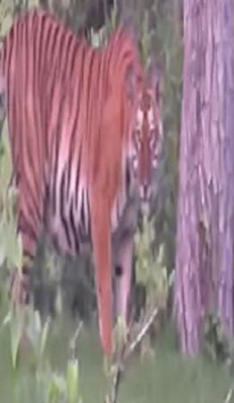 ಗುಂಡ್ಲುಪೇಟೆ ತಾಲೂಕಿನ ಬಂಡೀಪು ರಾಷ್ಟ್ರೀಯ ಉದ್ಯಾನವನದ ಮಧುಮಲೆ ಅರಣ್ಯ ವಲಯ ಪ್ರದೇಶದಲ್ಲಿ ಈ ಗಾತ್ರದ ಹುಲಿ ಕಾಣಿಸಿಕೊಂಡಿದ್ದು ಸಫಾರಿಗೆ ಹೋಗಿದ್ದ ಪ್ರವಾಸಿಗರ ಕ್ಯಾಮರಾದಲ್ಲಿ ಈ ದೃಶ್ಯ ಸೆರೆಯಾಗಿದೆ.