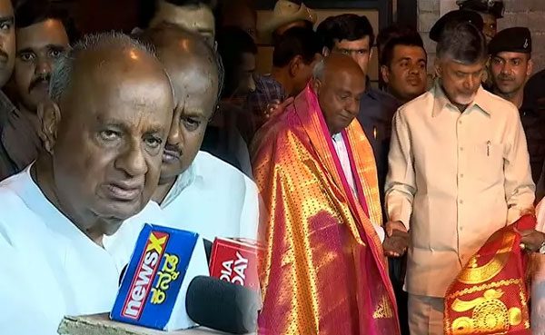 ಮಹಾಘಟಬಂದನ್ ಮುಂದಾಳತ್ವ ವಹಿಸಿಕೊಂಡಿರುವ ಆಂಧ್ರ ಸಿಎಂ ಚಂದ್ರಬಾಬುನಾಯ್ಡು, ಬೆಂಗಳೂರಿನ ಪದ್ಮನಾಭನಗರ ನಿವಾಸಕ್ಕೆ ತೆರಳಿ, ಮಾಜಿ ಪ್ರಧಾನಿ ಹೆಚ್.ಡಿ ದೇವೇಗೌಡ, ಮುಖ್ಯಮಂತ್ರಿ ಹೆಚ್.ಡಿ ಕುಮಾರಸ್ವಾಮಿಯನ್ನು ಭೇಟಿ ಮಾಡಿ ಚರ್ಚಿಸಿದರು.