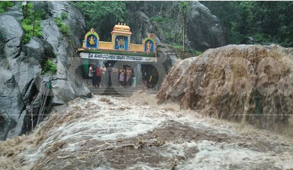 ಭಕ್ತರು ಕಲ್ಲತ್ತಿಗಿರಿ ಜಲಪಾತದ ಒಳಭಾಗದಲ್ಲಿರುವ ವೀರಭದ್ರೇಶ್ವರ ಸ್ವಾಮಿ ದೇವಾಲಯದ ಒಳಭಾಗದಲ್ಲಿದ್ದು, ನೀರು ಪ್ರವಾಹದ ರೀತಿಯಲ್ಲಿ ದೇವಾಲಯದ ಮುಂಭಾಗದಲ್ಲಿ ಹರಿದು ಬರುತ್ತಿದ್ದು, ಇದರಿಂದ ಭಕ್ತರು ಹೊರಬರದಂತಾಗಿದೆ.