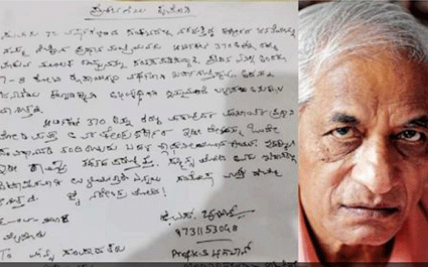ಮಂಗಳವಾರ ಲೋಕಸಭೆ ಕಲಾಪದಲ್ಲಿ ಕಲಂ 370 ರದ್ದು ಮಾಡುವ ಕೇಂದ್ರ ಸರ್ಕಾರದ ವಿಧೇಯಕದ ಕುರಿತು ಚರ್ಚೆ ನಡೆಯುತ್ತಿದ್ದರೆ, ಅದೇ ಸಮಯದಲ್ಲಿ ಕೇಂದ್ರ ಸರ್ಕಾರವನ್ನು ಬೆಂಬಲಿಸಿ ಪ್ರೊ. ಕೆ.ಎಸ್. ಭಗವಾನ್ ಸ್ವತಃ ತಮ್ಮ ಹಸ್ತಾಕ್ಷರದಲ್ಲಿ ಬರೆದಿದ್ದ ಆ ಒಂದು ಪತ್ರ ಇಡೀ ರಾಜ್ಯದಾದ್ಯಂತ ಕೋಲಾಹಲವನ್ನೇ ಸೃಷ್ಟಿಮಾಡಿತ್ತು.