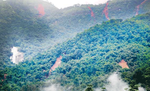 ಬೆಳ್ತಂಗಡಿ-ಮೂಡಿಗೆರೆ ಪ್ರದೇಶದ ಕುದುರೆಮುಖ ರಾಷ್ಟ್ರೀಯ ಉದ್ಯಾನವನ ವ್ಯಾಪ್ತಿಯ ಬೆಟ್ಟ, ಎಳನೀರು-ಬಂಗ್ರಪಲ್ಕೆ, ಗಾಳಿಗಂಡಿ ಬೆಟ್ಟ, ಇರೆಬೈಲು ಬೆಟ್ಟ, ಮೈದಾಡಿ ಬೆಟ್ಟ, ಬಳ್ಳಾಲರಾಯನ ದುರ್ಗ, ಅಗಲ್ದಬೆಟ್ಟ, ಬಣ್ಣಕಲ್ಲು ಬೆಟ್ಟ, ಕಡ್ತಿಕಲ್ಲು ಬೆಟ್ಟ ನಿರಂತರ ಮಳೆಗೆ ಈಗಲೂ ಕುಸಿಯುತ್ತಲೇ ಇದೆ. ಕುಸಿತದ ಪರಿಣಾಮ ನೇತ್ರಾವತಿಯ ಉಪನದಿಗಳ ಪಥವೂ ಬದಲಾಗಿದೆ. ಹಲವೆಡೆ ಹೊಸ ಜಲಪಾತ, ನದಿಮೂಲಗಳ ಉಗಮವಾಗಿವೆ. ಪರಿಸರ ತಜ್ಞರ ಪ್ರಕಾರ ಪಶ್ಚಿಮಘಟ್ಟದ 9 ಬೆಟ್ಟಗಳಲ್ಲಿ 456 ಪ್ರದೇಶಗಳಲ್ಲಿ ಬೃಹತ್ ಪ್ರಮಾಣದಲ್ಲಿ ಬಂಡೆ ಸಹಿತ ಮಣ್ಣು ಕುಸಿತವಾಗಿದ್ದು, ಬೆಟ್ಟ ಪ್ರದೇಶಲ್ಲಿ ಬರೆ ಎಳೆದಂತೆ ಕಾಣುತ್ತಿದೆ.