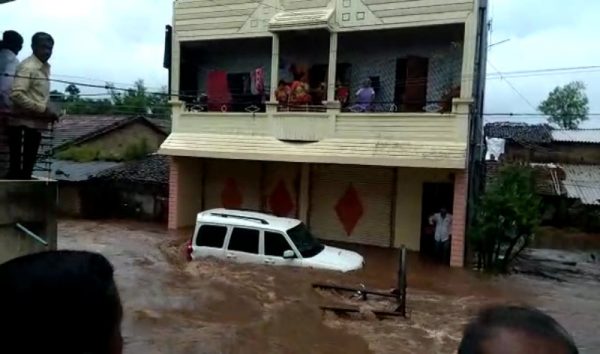 ಉತ್ತರ ಕರ್ನಾಟಕಕ್ಕೆ ಮತ್ತೆ ನೆರೆ: ವರುಣನ ಅಬ್ಬರಕ್ಕೆ ನಿಂತ ಜಾಗದಿಂದ ಕೊಚ್ಚಿ ಹೋಗಿ ಮೋರಿಗೆ ಬಿದ್ದ ಕಾರು