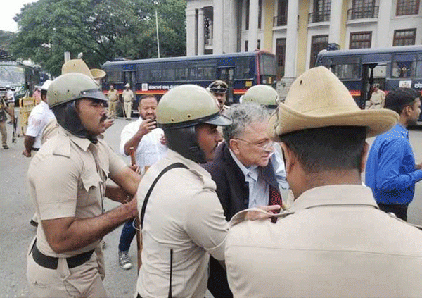 ಬೆಂಗಳೂರು: ಪೌರತ್ವ ತಿದ್ದುಪಡಿ ಕಾಯ್ದೆ ವಿರೋಧಿಸಿ ಬೆಂಗಳೂರು, ಕಲಬುರಗಿ, ಬಳ್ಳಾರಿಯಲ್ಲಿ ನಡೆಯುತ್ತಿರುವ ಪ್ರತಿಭಟನೆ ಗುರುವಾರ ತಾರಕಕ್ಕೇರಿದೆ. ಮತ್ತೊಂದೆಡೆ ನಿಷೇಧಾಜ್ಷೆ ನಡುವೆಯೂ ಸಿಎಎ ವಿರೋಧಿಸಿ ಬೆಂಗಳೂರಿನ ಟೌನ್ ಹಾಲ್ ಮುಂಭಾಗ ಪ್ರತಿಭಟನೆ ನಡೆಸುತ್ತಿದ್ದ ಇತಿಹಾಸಕಾರ ರಾಮಚಂದ್ರ ಗುಹಾ ಸೇರಿದಂತೆ ನೂರಾರು ಮಂದಿಯನ್ನು ಪೊಲೀಸರು ಬಂಧಿಸಿದ್ದಾರೆ.