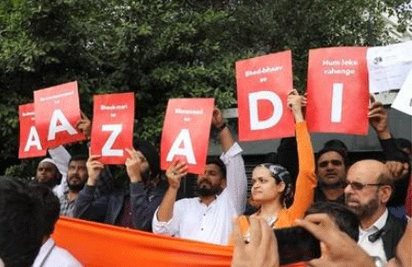 ಜಮ್ಮು ಮತ್ತು ಕಾಶ್ಮೀರಕ್ಕೆ ಸ್ವಾಯತ್ತ ಸ್ಥಾನಮಾನ ರದ್ದಾದ ಸಂದರ್ಭದಲ್ಲಿ ‘ಆಜಾದಿ’ ಘೋಷಣೆ ಹೆಚ್ಚು ಚಾಲ್ತಿಯಲ್ಲಿತ್ತು. ಜವಾಹರಲಾಲ್‌ ನೆಹರೂ ವಿಶ್ವವಿದ್ಯಾಲಯದಲ್ಲಿ ಆಗಾಗ್ಗೆ ‘ಆಜಾದಿ’ ಘೋಷಣೆ ಕುರಿತಂತೆ ಸುದ್ದಿಯಾಗುತ್ತಲೇ ಇರುತ್ತದೆ.