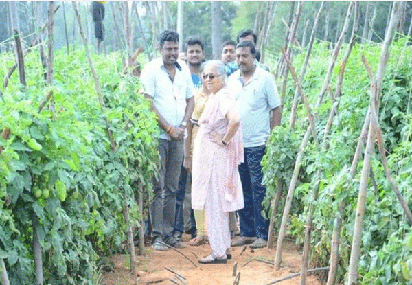 ಆರ್.ನರೇಂದ್ರಬಾಬು ಅವರು ಸುಮಾರು 6 ಎಕರೆ ಪ್ರದೇಶದ ತಮ್ಮ ತೋಟದಲ್ಲಿ ಟೊಮೇಟೊ ಬೆಳೆ ಬೆಳೆದಿದ್ದಾರೆ. ಗಿಡಗಳು ಸುಮಾರು 10 ಅಡಿ ಎತ್ತರಕ್ಕೆ ಬೆಳೆದಿವೆ. ಸಾಮಾಜಿಕ ಜಾಲತಾಣಗಳಲ್ಲಿ10 ಅಡಿ ಎತ್ತರದ ಟೊಮೇಟೊ ಬೆಳೆ ಬಗ್ಗೆ ಸುದ್ದಿ ಹರಡಿತ್ತು. ಹೀಗಾಗಿ, ಬೆಳೆಯನ್ನು ನೋಡುವ ಕುತೂಹಲದಿಂದ ಸುಧಾಮೂರ್ತಿಯವರು ಬಿದರುಗುಪ್ಪೆಯ ನರೇಂದ್ರ ಬಾಬು ತೋಟಕ್ಕೆ ಭೇಟಿ ನೀಡಿದ್ದರು. ತೋಟದಲ್ಲಿರುವ ಬೆಳೆಯನ್ನು ವೀಕ್ಷಿಸಿದ ಸುಧಾಮೂರ್ತಿ, ಮನೆಯವರೊಂದಿಗೆ ಚರ್ಚಿಸಿ ವಿವರ ಪಡೆದು ಮೆಚ್ಚುಗೆ ಸೂಚಿಸಿದರು.