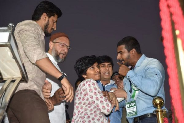 ಸಿಎಎ ಹಾಗೂ ಎನ್ಸಿಆರ್ ವಿರೋಧಿಸಿ ಇಂದು ಬೆಂಗಳೂರಿನ ಫ್ರೀಡಂ ಪಾರ್ಕಿನಲ್ಲಿ ಪ್ರತಿಭಟನೆ ನಡೆಸಲಾಗುತ್ತಿತ್ತು. ಈ ಪ್ರತಿಭಟನಾ ಕಾರ್ಯಕ್ರಮದಲ್ಲಿ ಎಂಐಎಂ ಮುಖ್ಯಸ್ಥ ಆಸಾದುದ್ದೀನ್ ಓವೈಸಿ ಸೇರಿದಂತೆ ಹಲವು ನಾಯಕರು ಭಾಗವಹಿಸಿದ್ದು, ಈ ವೇಳೆ ವೇದಿಕೆಯಲ್ಲೇ ಯುವತಿಯೊಬ್ಬಳು ಪಾಕಿಸ್ತಾನ ಜಿಂದಾಬಾದ್ ಎಂದು ಪಾಕ್ ಪರ ಜೈಕಾರ ಕೂಗಿದ್ದಾಳೆ. ಈ ವೇಳೆ ಆಸಾದುದ್ದೀನ್ ಓವೈಸಿ ಸೇರಿದಂತೆ ವೇದಿಕೆ ಮೇಲಿದ್ದ ಗಣ್ಯರು ಆಕೆಯ ಕೈಯಲ್ಲಿದ್ದ ಮೈಕ್ ಎಳೆದು, ಬಲವಂತವಾಗಿ ವೇದಿಕೆಯಿಂದ ಕೆಳಗಿಳಿಸಿದರು. ಈ ವೇಳೆ ಅಲ್ಲೇ ಇದ್ದ ಪೊಲೀಸರು ಆಕೆಯನ್ನು ತಮ್ಮ ವಶಕ್ಕೆ ಪಡೆದರು.