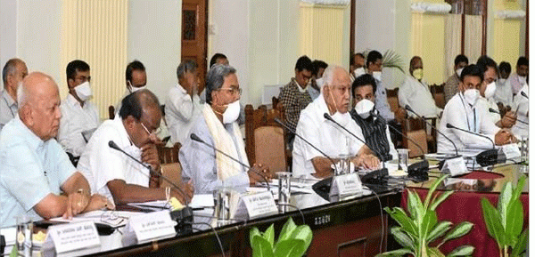 ಬೆಂಗಳೂರು: ಕೊರೊನಾ ನಿಯಂತ್ರಣ ಮಾಡುವ ನಿಟ್ಟಿನಲ್ಲಿ ಭಾನುವಾರ ವಿಧಾನಸೌಧದಲ್ಲಿ ಸರ್ವಪಕ್ಷಗಳ ಸಭೆ ನಡೆದಿದ್ದು ಕೆಲವೊಂದು ಮಹತ್ವದ ನಿರ್ಣಯಗಳನ್ನು ತೆಗೆದುಕೊಳ್ಳಲಾಗಿದೆ. ಸಿಎಂ ಬಿ.ಎಸ್ ಯಡಿಯೂರಪ್ಪ ಅವರ ನೇತೃತ್ವದಲ್ಲಿ ನಡೆದ ಸಭೆಯಲ್ಲಿ ವಿರೋಧ ಪಕ್ಷದ ನಾಯಕ ಸಿದ್ದರಾಮಯ್ಯ ಹಾಗೂ ಮಾಜಿ ಸಿಎಂ ಎಚ್.ಡಿ ಕುಮಾರಸ್ವಾಮಿ, ಸೇರಿದಂತೆ ಸಚಿವರು, ಶಾಸಕರು ಹಾಗೂ ಕಾಂಗ್ರೆಸ್ ಮತ್ತು ಜೆಡಿಎಸ್ನ ಪ್ರಮುಖ ನಾಯಕರು ಭಾಗವಹಿಸಿದ್ದರು.