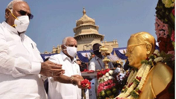 ಪ್ರತಿವರ್ಷ ಸರ್ಕಾರದ ವತಿಯಿಂದ ಡಾ. ಬಿ.ಆರ್. ಅಂಬೇಡ್ಕರ್ ಅವರ ಜಯಂತಿ ಆಚರಿಸಲಾಗುತ್ತದೆ. ಅದೇ ರೀತಿ ಈ ಬಾರಿ ಕೂಡ ಆಚರಿಸಲಾಗುತ್ತಿದ್ದು ಸರ್ಕಾರದ ಪರವಾಗಿ ಮುಖ್ಯಮಂತ್ರಿ ಬಿ.ಎಸ್. ಯಡಿಯೂರಪ್ಪ (BS Yediyurappa) ವಿಧಾನಸೌಧದ ಆವರಣದಲ್ಲಿರುವ ಅಂಬೇಡ್ಕರ್ ಪ್ರತಿಮೆಗೆ ಪುಷ್ಪಾರ್ಚನೆ ನೆರವೇರಿಸಿದರು.