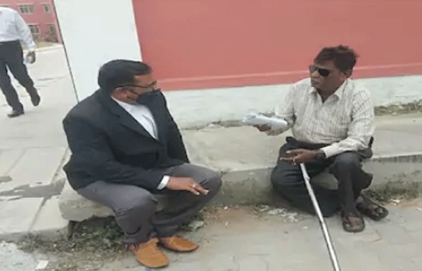ಕೋರ್ಟ್ ಆವರಣದಲ್ಲಿದ್ದ ಅಂಧರೊಬ್ಬರ ಕಷ್ಟವನ್ನು ನ್ಯಾಯಾಲಯದ ಹೊರಗಡೆ ಬಂದು ನೆಲದ ಮೇಲೆ ಕುಳಿತು ಸಮಸ್ಯೆ ಆಲಿಸಿದ ನ್ಯಾಯಾಧೀಶರು!