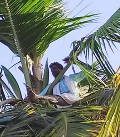 ಬಳ್ಳಾರಿ: ಹೆಂಡತಿಯರು ಬೇಕು ಎಂದು ತೆಂಗಿನ ಮರ ಹತ್ತಿ ಕುಳಿತ ವ್ಯಕ್ತಿಯೊಬ್ಬ ಪ್ರಥಮ ಪತ್ನಿ ನೋಡಿ ಮರದಿಂದ ಇಳಿದು ಬಂದ ಘಟನೆ ಬಳ್ಳಾರಿಯಲ್ಲಿ ನಡೆದಿದೆ.