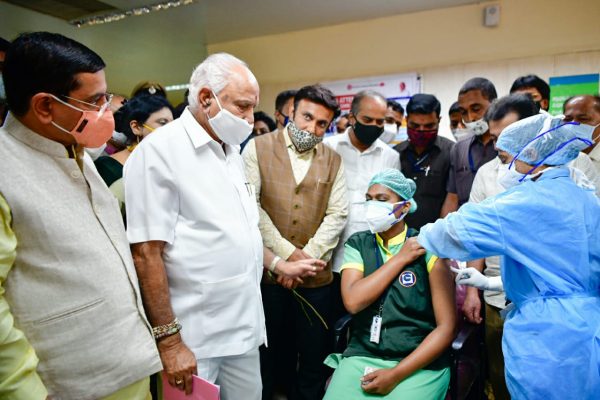 ರಾಜ್ಯದಲ್ಲಿ ಕೊರೋನಾ ಲಸಿಕೆ ಅಭಿಯಾನಕ್ಕೆ ಇಂದು ಚಾಲನೆ ನೀಡಿದ ಯಡಿಯೂರಪ್ಪ; ವಿಕ್ಟೋರಿಯಾ ಆಸ್ಪತ್ರೆಯ ಸ್ವಚ್ಛತಾ ಸಿಬ್ಬಂದಿಗೆ ಮೊದಲ ಲಸಿಕೆ