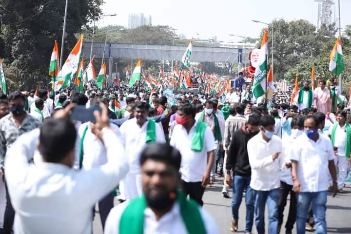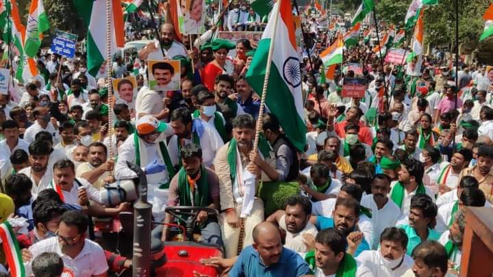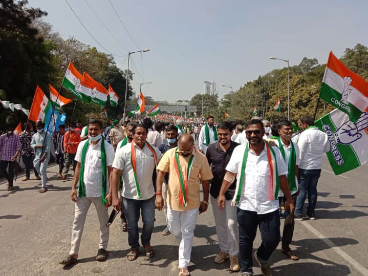 ಕಾಂಗ್ರೆಸ್ ಹಮ್ಮಿಕೊಂಡಿರುವ ರಾಜಭವನ ಚಲೋ ರ್ಯಾಲಿಯಲ್ಲಿ ನೂರಾರು ಸಂಖ್ಯೆಯಲ್ಲಿ ರೈತರು ಹಾಗೂ ಕಾರ್ಯಕರ್ತರು ಭಾಗವಹಿಸಿದ್ದರು. ಹೀಗಾಗಿ ಬೆಂಗಳೂರು–ಮೈಸೂರು ಹೆದ್ದಾರಿ, ಆನಂದರಾವ್ ವೃತ್ತ, ಸಂಗೊಳ್ಳಿ ರಾಯಣ್ಣ ರೈಲು ನಿಲ್ದಾಣ ಸೇರಿದಂತೆ ಹಲವೆಡೆ ವಾಹನ ಸಂಚಾರ ದಟ್ಟಣೆ ಉಂಟಾಗಿದೆ.