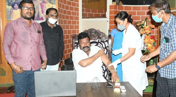 ಸಚಿವ ಬಿ.ಸಿ.ಪಾಟೀಲ್, ಪತ್ನಿ ವನಜಾ ಪಾಟೀಲ್ ಅವರು ಹಾವೇರಿ ಜಿಲ್ಲೆ ಹಿರೇಕೆರೂರಿನ ತಮ್ಮ ನಿವಾಸದಲ್ಲಿ ಆರೋಗ್ಯ ಸಿಬ್ಬಂದಿಯಿಂದ ಮನೆಯಲ್ಲೇ ಕೊವಿಡ್ ಲಸಿಕೆ ಪಡೆದಿದ್ದಾರೆ. ಸಾಮಾನ್ಯವಾಗಿ ಲಸಿಕೆ ಬಳಿಕ 30 ನಿಮಿಷಗಳ ಕಾಲ ನಿಗಾ ವಹಿಸುವ ಅಗತ್ಯವಿರುತ್ತದೆ. ಆದ್ರೆ ಮನೆಯಲ್ಲಿಯೇ ಲಸಿಕೆ ಪಡೆದಿದ್ದು ಏಕೆ? ಎಂಬ ಪ್ರಶ್ನೆ ಕೇಳಿ ಬರುತ್ತಿದೆ. ಲಸಿಕೆ ಪಡೆಯುವಾಗ ಮುನ್ನೆಚ್ಚರಿಕೆ ಕ್ರಮಗಳು ಅಗತ್ಯ. ಹೀಗಾಗಿಯೇ ಎಲ್ಲರಿಗೂ ಆಸ್ಪತ್ರೆ ಅಥವಾ ಪ್ರಾಥಮಿಕ ಆರೋಗ್ಯ ಕೇಂದ್ರಗಳಲ್ಲಿ ಲಸಿಕೆ ಪಡೆಯಲು ಸೂಚನೆ ನೀಡಲಾಗಿದೆ. ಆದ್ರೆ ಸಚಿವ ಬಿ.ಸಿ.ಪಾಟೀಲ್ ತಮ್ಮದೇ ನಿಯಮವನ್ನು ರೂಪಿಸಿಕೊಂಡಿದ್ದಾರೆ.