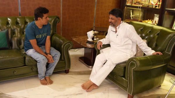 ಕೆಪಿಸಿಸಿ ಅಧ್ಯಕ್ಷ ಡಿ.ಕೆ ಶಿವಕುಮಾರ್ ಭೇಟಿಯಾಗಿ ಮಾತುಕತೆ ನಡೆಸಿದ ನಟ ಶಿವರಾಜ್ ಕುಮಾರ್