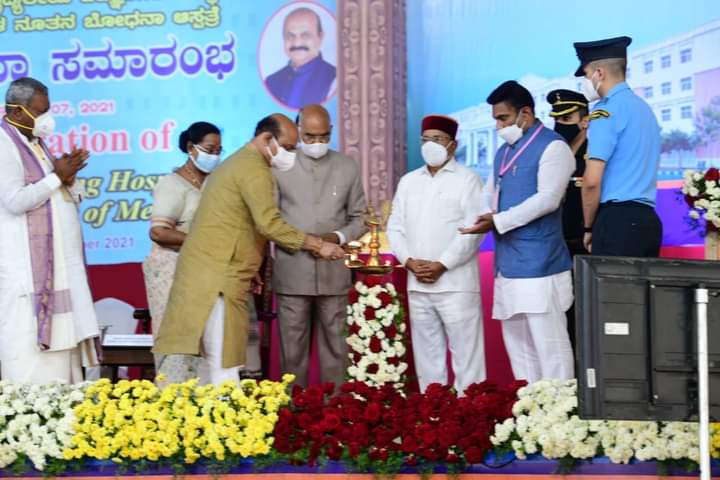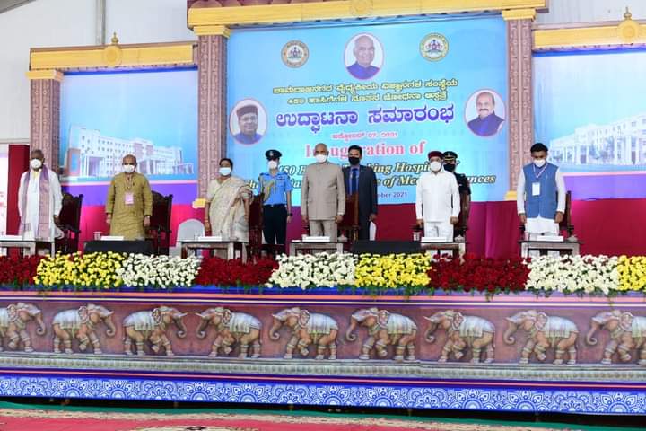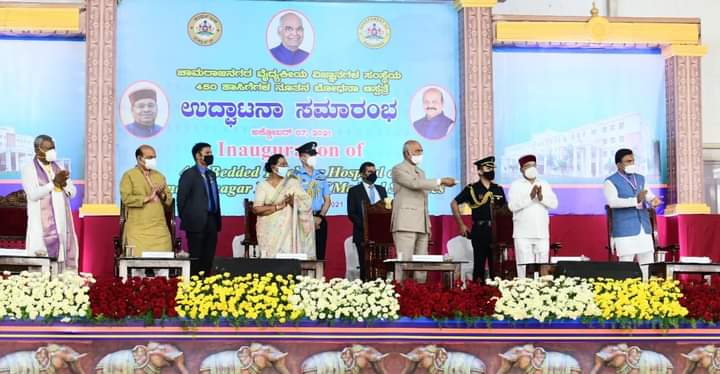 ಚಾಮರಾಜನಗರ ವೈದ್ಯಕೀಯ ವಿಜ್ಞಾನ ಸಂಸ್ಥೆಯ ವತಿಯಿಂದ ಆಯೋಜಿಸಿರುವ 450 ಹಾಸಿಗೆಯ ಬೋಧನಾ ಆಸ್ಪತ್ರೆಯನ್ನು ಉದ್ಘಾಟಿಸಿದರು. ಬಳಿಕ ವಿದ್ಯಾರ್ಥಿಗಳನ್ನು ಉದ್ದೇಶಿಸಿ ಕನ್ನಡದಲ್ಲಿಯೇ ಮಾತು ಆರಂಭಿಸಿದ ಕೋವಿಂದ್ ಅವರು, ‘ಕರ್ನಾಟಕಕ್ಕೆ ಬರುವುದು ಬಹಳ ಇಷ್ಟ. ಇಲ್ಲಿನ ಜನರೊಂದಿಗೆ ಇರುವುದು ಬಹಳ ಇಷ್ಟ’ ಎಂದರು.