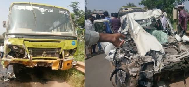 ದಾವಣಗೆರೆ: ದಾವಣಗೆರೆ ಜಿಲ್ಲೆಯ ನ್ಯಾಮತಿ ಬಳಿ ಕೆ.ಎಸ್.ಆರ್.ಟಿಸಿ ಬಸ್ ಹಾಗೂ ಕಾರು ನಡುವೆ ಭೀಕರ ಅಪಘಾತ ಸಂಭವಿಸಿದ್ದು ಅಪಘಾತದಲ್ಲಿ ನಾಲ್ವರು ದುರ್ಮರಣ ಹೊಂದಿದ್ದಾರೆ.